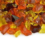 These Fire Glass Blends are combinations of two to three types of colored crushed fire pit glass. These glass rock colors go well together and have been pre-mixed for your convenience. Crushed fire glass is a classic look that reflects the firelight in your fire pit or fireplace. This type of glass is made from crushing large pieces of glass instead of shattering thin panes. The process leaves a finished product that looks more natural, retaining more contours and character. These fire pit glass rocks will provide a radiant, eye-catching fireplace feature in your home or backyard. Imagine the flames dancing above these translucent stones as your friends and family gather around the fire.